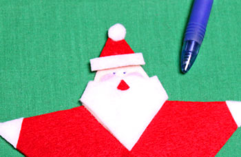 Cut a strip of black felt 3/8 inch wide and longer than the distance across the star for Santa's belt.