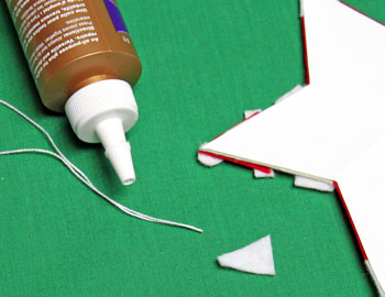 Match a straight edge of the white felt to each arm and glue. Turn the star over to cut away the excess felt.