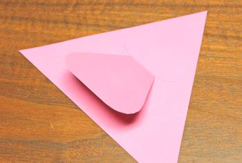 Apply spots of glue in the middle along each of the next three folds and on the back of the small upper triangle point.