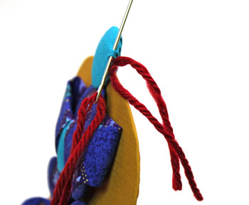 Sew small stitches across the back to connect the face yo yo to the top of the wings.