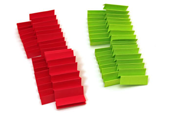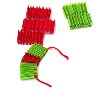Instead of 4 strips of each color, I used three paper strips of 12 inches by 1 1/2 inches.