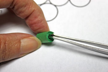 I like to use tweezers because they can hold the end of the paper as I wrap it around.